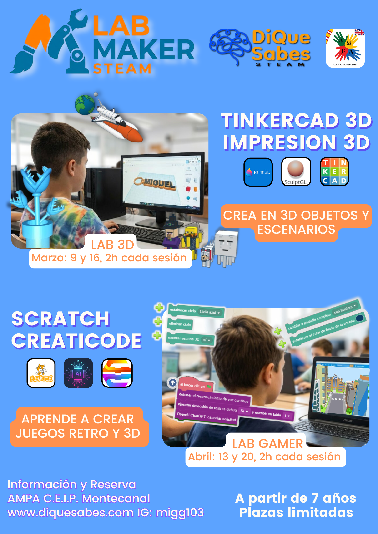 LAB 3D. Marzo: días 9 y 16, sesión de 2h. 45€